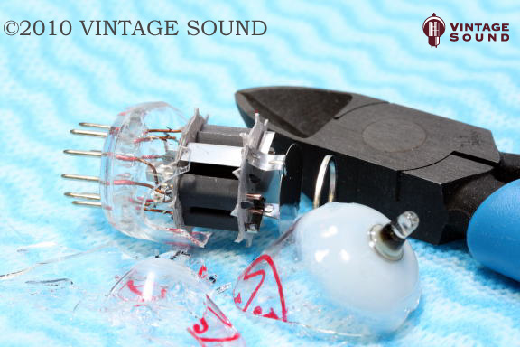 【Fig.4】光らない?12AX7 Mullardを割ったところ